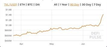 В целом принципиальная картина не изменилась: график ETH показывает всё тот же вялый интерес к DeFi; "капитализация" DeFi в долларах вплотную приблизилась к февральскому максимуму - благодаря вертолётным деньгам центро-банков на начало июня курс ETH/USD скорректировался на 80% относительно мартовского завала. Но вместе с тем на графике DAI хорошо заметен всплеск - будущий новый лидер DeFi-сектора, сервис Compaund, использует более широкий набор залоговых инструментов в сравнении с MakerDAO. И поначалу одним из основных залогововых инструментов Compaund-а помимо ETH был именно фантик DAI.