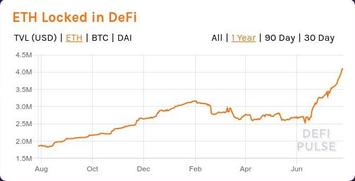 Далее рассмотрим хронологию перехода DeFi от зимнего хайпа к летнему. Хронология этого перехода представлена в виде серии слайд-шоу, отображающих динамику общей суммы заблокированных в DeFi средств, исчисляемых в USD, ETH и DAI (источник - сервис DefiPulse). DAI - это те самые фантики-"стейблкоины" DeFi-флагмана первой половины 2020 года MakerDAO, которые тот раздавал в обмен на "залог" криптовалюты, главным образом - на "залог" eth.